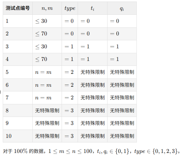 第一行三个整数n,m,type。其中type表示特殊限制编号,具体意义见数据范围。它可能可以帮助你获得部分分,但正解不依赖于此。